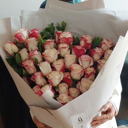 투톤 조합이 색다른 '스위트니스' 장미로 제작한 대형 꽃다발입니다.