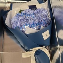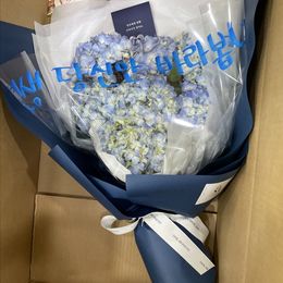 무더운 여름이라 그런지 블루계열 꽃이 시원해 보일 거 같아서 푸른 수국으로 사서 선물했어요. 받으신 분이 제일 좋아하는 꽃이라고 하셔서 기분이 좋았습니다. 다만 저는 레터링을 원하지 않는데 수국 대형꽃다발은 이거뿐이고, 레터링 문구를 입력해야만 주문이 되어서 어쩔 수 없이 입력하기는 했습니다. 옵션으로 되어 있으면 좋았을 거 같아요.