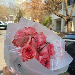 핑크 컬러로 로맨틱한 꽃다발을 완성했어요.