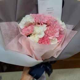 급하게 주문바꾸고 싱싱한 꽃들로 최대한 빨리 보내달라고 부탁드렸는데 제가 말씀드린대로 보내주셨어요. 꽃 예쁘구요. 조금 늦은 오전에 주문했는데도 빨리 배송해주셨어요. 카네이션 좋아하시는 분들이면 이 꽃다발이 만족스러우실거예요.