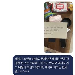주문 당시 주문란에 보면 레터링(필수 작성) 란과 아래 메시지 카드 란을 맞이하게 됩니다.. 토퍼가 예뻐서 같이 주문했습니다만.. 토퍼 문구를 어디다 써야하는지 몰라 문의했더니 레터링 란에 쓰면 된다고 하여 쓰고 메시지카드는 따로 카드가 기본 포함되있나보다 하며 카드내용을 썼더니 토퍼에 메시지 카드내용이 들어가있고, 심지어 프린트 해온 퀄리티는 저모양이네요..ㅎㅎ 해당 내용에 대해서 문의남겼지만 아직도 회신이 없으시네요..(못보신걸까요..?) 매번 원모먼트를 잘 사용하고있지만 이번엔 정말 실망입니다.. 그나마 온 행운목이 이뻐서(사진과는 조금 많이 다르지만, 식물이니 키우면 이뻐질거란 생각..) 차마 별 한개를 드릴 순 없었네요.. 여튼 안타깝습니다..