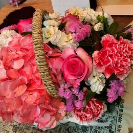 사랑스런 기분을 한가득 담은, 핑크빛 꽃바구니