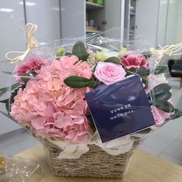 '행복한 사랑'의 꽃말을 담은 핑크 컬러 장미와 '소녀의 꿈'이라는 꽃말을 가진 핑크 수국 그리고 '존경'의 의미를 담은 카네이션으로 만든 핑크 블룸이에요. 이 꽃바구니는 승진 선물, 부모님 기념일 선물 혹은 다양한 축하의 선물로 전달할 수 있어요.