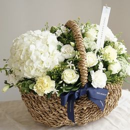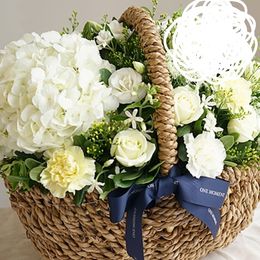 수수한 화이트 컬러의 꽃바구니