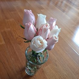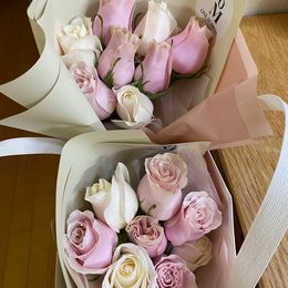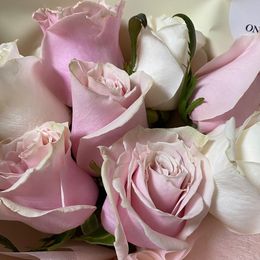 핑크 장미와 청순한 화이트 장미가 만나 로맨틱하고 탐스러운 꽃다발이 완성되었어요.